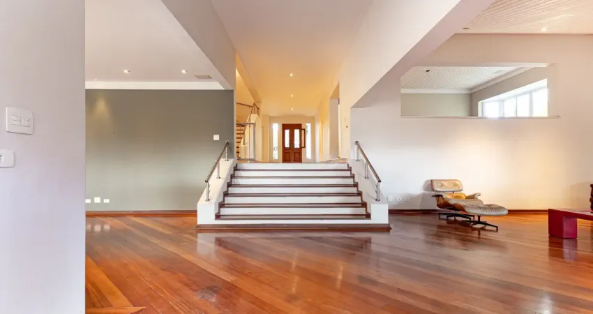 O imóvel conta com um elegante hall de entrada, lavabo, escritório com lareira, salas de jantar e de almoço, além de uma cozinha funcional com despensa. A área íntima é composta por quatro suítes com closet e uma ampla sala íntima.