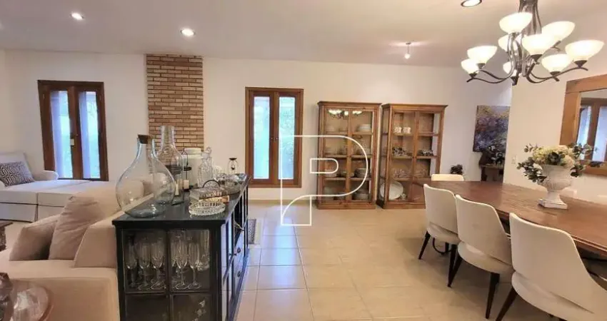 O imóvel conta com 4 dormitórios, sendo 2 suítes, sala de estar e jantar integradas, lareira, sala de TV, cozinha com móveis planejados, 4 banheiros + lavabo, despensa, lavanderia e ar-condicionado.
