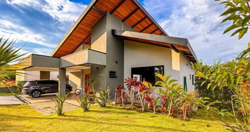 Terreno com (1.100) M2, área construída de (380) m2, sala ampla para dois ambientes, cozinha conceito aberto, a área gourmet, um espetáculo a parte, forno a lenha e forno para pizza, piscina com deck amplo e vista para o bosque com espécies nativas da mata Atlântica, firi pet com ambiente aconchegante, área verde, (4) suítes amplas, sendo (1) máster, (6) wc, (6) vagas de garagem. Sistema de áudio possibilitando experiências sensoriais, aquecimento solar, sistema de captação e reutilização de água de chuva, isolamento térmico e acústico, pomar com mais de 40 espécies frutíferas produzindo, sistema de câmeras de monitoramento, sendo que o condomínio oferece estrutura completa.