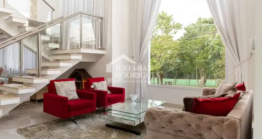 No piso térreo, ao adentrar o imóvel, somos recebidos por uma espaçosa sala de pé direito duplo, composta por três ambientes integrados. Além disso, há uma sala de TV que pode ser facilmente convertida em um quarto adicional, juntamente com um elegante escritório e um lavabo. A cozinha, completamente planejada, atende aos mais exigentes padrões de qualidade.