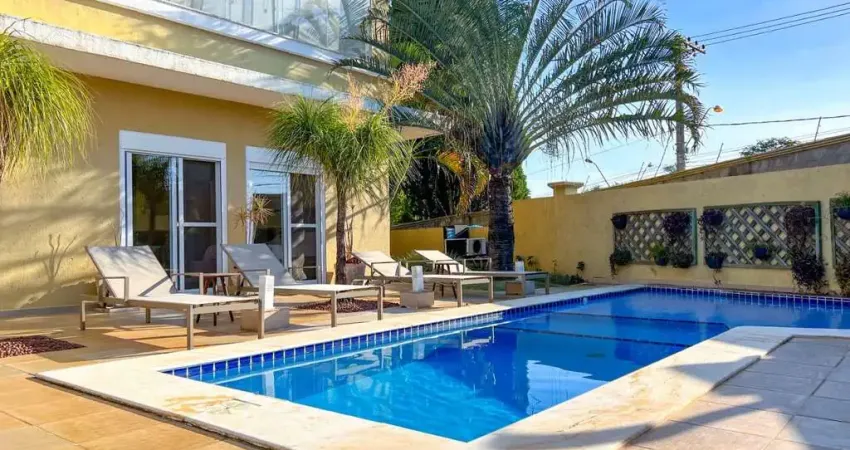 salas integradas, com luminosidade própria em toda a casa, home, sala de cinema, salão de jogos, escritório, 4 amplas suítes com closet, varandas agradáveis com frescor da natureza exuberante da cidade e lindo Pôr do Sol. Cozinha, área de serviço, espaço gourmet, amplo, piscina, churrasqueira, forno, horta, espaço para leitura, gramado, casa impecável com lazer completo. Os ambientes são agradáveis e acolhedores, construção sólida, material de qualidade, garagem para seis carros. A cinco minutos dos melhores colégios como Maple Bear, Santanna e outros, cinco minutos das comodidades da cidade! A casa é uma oportunidade maravilhosa, foi construída com muito carinho, e aguarda você para morar e ser muito feliz e próspero! O condomínio fica a 300 metros da represa I da cidade, onde o lazer é completo, e está garantido, a 20 minutos de Campinas, uma das cidades mais desenvolvidas cidades do país!