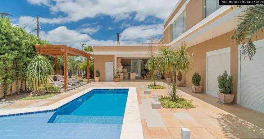 Ampla casa moderna em estilo contemporâneo, com detalhes para quem aprecia sofisticação, tranquilidade e comodidade. A casa possui 4 dormitórios sendo 3 suítes térreas. A Suíte master conta com sala de banho, com TV e ofurô. Sala de estar com pé direto duplo, lareira e jardim de inverno.