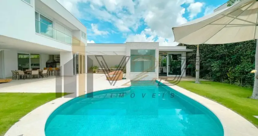 Casa sobrado com 4 suítes, sendo uma suíte máster com closet e banheira, amplo living com pé direito alto para dois ambientes, sala de TV e escritório no pavimento superior, ambientes integrados, repletos de luz natural, cozinha totalmente equipada com ricos armários, despensa e lavanderia, espaço gourmet, piscina, academia, sauna, banheiro externo e um quintal com gramado,