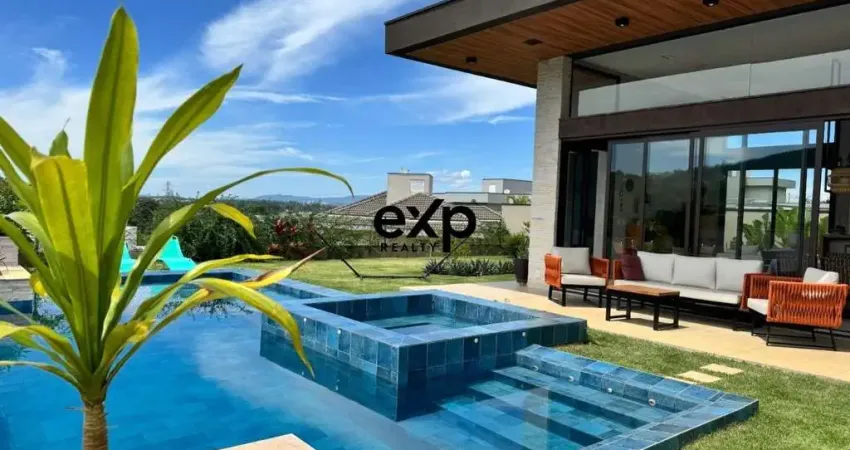 A sofisticação de uma arquitetura imponente aliada à conveniência de viver em um único pavimento onde o living com pé direito duplo e iluminação natural vindo dos panos de vidro do hall de entrada, integram a área social, sala de jantar, cozinha americana, lavabo, escritório e gourmet com churrasqueira, onde as portas de vidro nos levam a piscina com borda infinita e spa com hidromassagem. O luxo de ter as montanhas e o horizonte como parte do paisagismo do seu quintal.