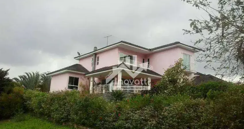 Excelente casa em terreno de 980m², todo montado, quatro quartos, todo com suíte e closet, sendo um no primeiro pavimento, salão em dois ambientes, sala de TV, escritório, copa/cozinha, lavabo, lavanderia, dependência completa de empregada, área de lazer com churrasqueira e espaço para sauna.