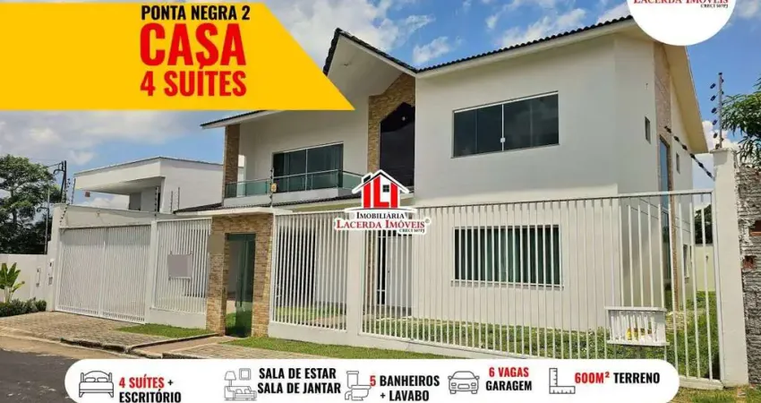 Ponta Negra 2, casa Duplex com 4 suítes + Escritório, 600m² terreno, 440m² Edificado