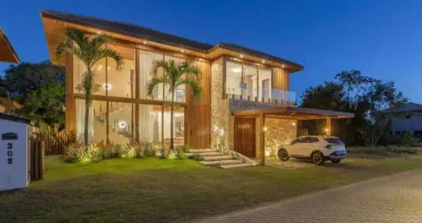 Casa com 5 suítes mais dependências de empregada completa com dois pavimentos, área gourmet com ilha e bancada, sala de jantar, sala de estar, lavabo, cozinha, pergolado externo com 3 ambientes, piscina e hidromassagem aquecida, wc piscina, área de serviço e depósito com garagem para quadriciclo, garagem para 4 carros, sendo dois cobertos e totem coberto para serviços de energia, gás e água. 3 tanques num total de 8000 litros de água, aquecimento de água para chuveiros e pias cozinha e área gourmet, portas internas em cumaru maciço ripado, deck e pergolado em cumaru maciço.