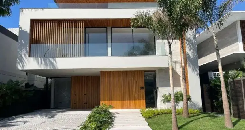 Maravilhosa Casa Triplex Condomínio Alphaville Barra da Tijuca - 3 pavimentos, 5 suítes, sendo a suíte master com closet, sala de banho e hidromassagem, sala com 3 ambientes, sala e cozinha integrados ao lazer, terceiro pavimento com amplo salão, aparelhos de ar condicionado instalados, área gourmet com churrasqueira, forno de pizza à lenha, piscina revestida em pedra hijau, hidromassagem, sauna e exuberante paisagismo.