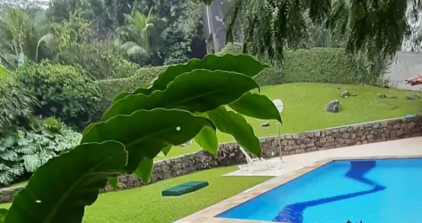 1° Pavimento - Sala de Estar em 3 ambientes, um deles com lareira, pé direito de 7 metros, Sala de Jantar, Escritório, Lavabo, Copa, Cozinha, Despensa, Dependências (2), Banheiros de Serviço, Lavanderia e Garagem para 6 carros. A parte social é toda em painéis de vidro o que traz a paisagem do jardim pra dentro destes ambientes , traz iluminação para o interior e faz a ligação com a parte externa da casa. Piso em pedras Carranca envernizadas