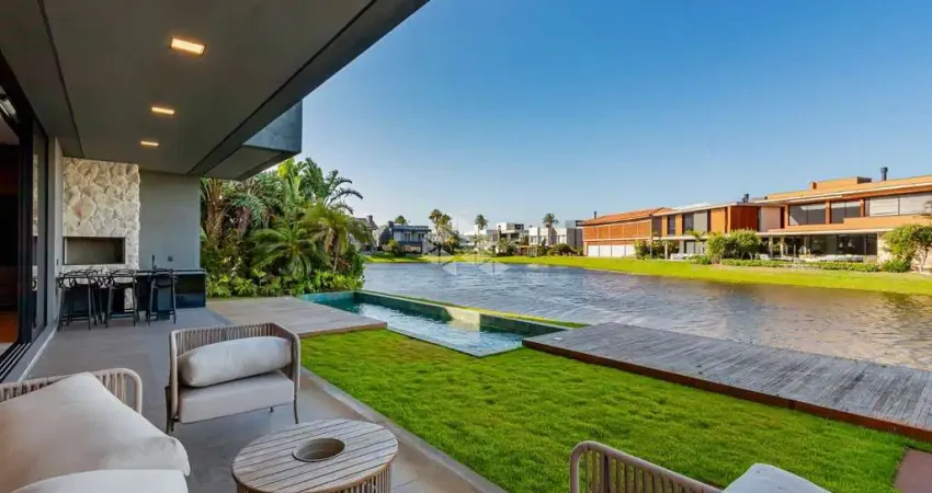 Casa tipo sobrado no condomínio Sense com 05 suítes mobiliada e decorada, lavabo, dependência de empregada, lareira, living Integrado, elevador, excelente iluminação natural, Piscina concreto/aquecida.