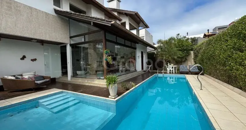 Casa ampla, mobiliada e muito bem projetada, com 5 suítes, localizada em um condomínio fechado de alto padrão. O imóvel conta com living com pé-direito duplo, lareira, sala de jantar, sala de TV privativa, cozinha planejada e um espaço gourmet completo com churrasqueira, integrado à piscina com deck e um lindo jardim com plantas ornamentais.