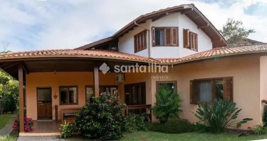 Casa Semi-mobiliada em condomínio fechado no Rio Tavares. Excelente oportunidade para você que deseja morar bem, com qualidade de vida desfrutando de toda a natureza ao seu redor, mas também não abre mão da segurança de uma portaria 24 horas. A casa principal possui três suítes térreas, biblioteca, sala de estar e jantar com lareira e pé direito alto, mais um quarto com mezanino e banheiro privativo, cozinha totalmente planejada, área de serviço, aos fundos edícula com uma suíte e mais um depósito, terreno com muito espaço em meio a natureza, é o destaque desse imóvel, possui várias árvores frutíferas, uma aconchegante varanda para relaxar com família e amigos!