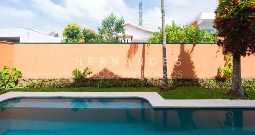 São 5 suítes, incluindo uma suíte master com varanda privativa. Os ambientes sociais contam com sala de estar e jantar integradas, pé-direito duplo e excelente iluminação natural, além de home theater que proporciona conforto e experiência acústica diferenciada. O escritório privativo tem vista para o jardim lateral, trazendo charme e privacidade ao ambiente de trabalho.