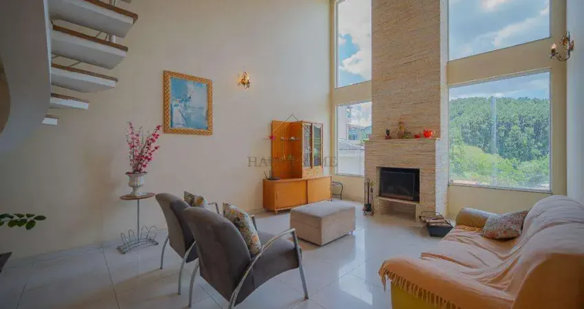 Com uma área construída de 395m², o imóvel conta com 5 suítes, a master com closet, banheira e sacada. Conta também com vista permanente para a área de preservação, sala com pé direito alto, lareira, e bastante luz natural. Na frente da casa 2 vagas cobertas e 4 descobertas. Além disso, possui área gourmet completa e piscina.
