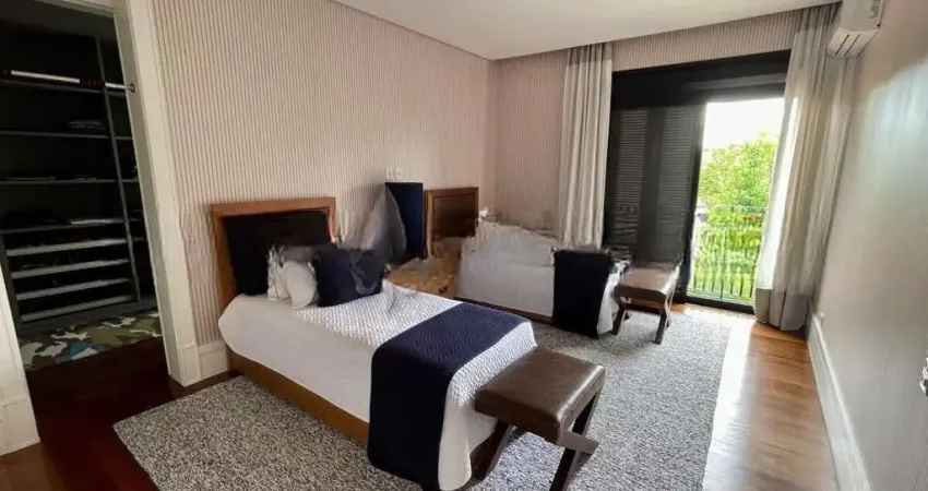 No piso superior ficam as 5 suítes com closet e ar condicionado entre uma sala íntima com TV e roupeiro.