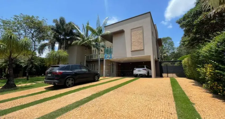 Incrível casa de dois andares em condomínio fechado, terreno com 1.400m² e 500m² de área construída total. com 5 suítes sendo a máster com banheira e closet, sala ampla 3 ambientes, sendo estar, jantar e lounge, sala de tv, lavabo, cozinha planejada rica em armários, despensa, lavanderia. Ampla área gourmet com churrasqueiras, torre quente, freezer, chopeira, balcão refrigerado, sanitário masculino e feminino. Área externa com salão de festa, piscina com ofurô e praia com acesso a sauna e pomar com bicicletario.