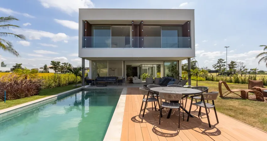 A Vila será composta por 20 casas de 500 m² em terrenos de 1.000 m², oferecendo 2 opções de plantas e 4 opções de fachada, permitindo personalização dentro de um padrão arquitetônico harmonioso. Todas as residências são distribuídas em dois pavimentos, com 5 suítes, living e sala de jantar integrados à área gourmet, conectados a uma área externa com piscina e sauna, proporcionando conforto, funcionalidade e integração dos ambientes.