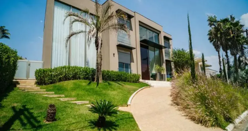 Casa NOVA E TOTALMENTE MOBILIADA com 3 pavimentos, amplo living com 3 ambientes, elevador, Home Theater, escritório, lavabo, salas de jantar e almoço, cozinha com ilha e dispensa, área gourmet com lounge, gazebo, piscina aquecida, amplo SPA com sauna e banheiro, 5 suítes, todas com closet e banheiro, sendo a máster com 2 banheiros ( ele e ela ) 2 closets ( ele e ela), ampla sala intima, 3 quartos de empregada com sala e banheiro, garagem coberta para 8 carros e anexo um box para lavagem de carro, infra para gerador a gás e aspirador central.