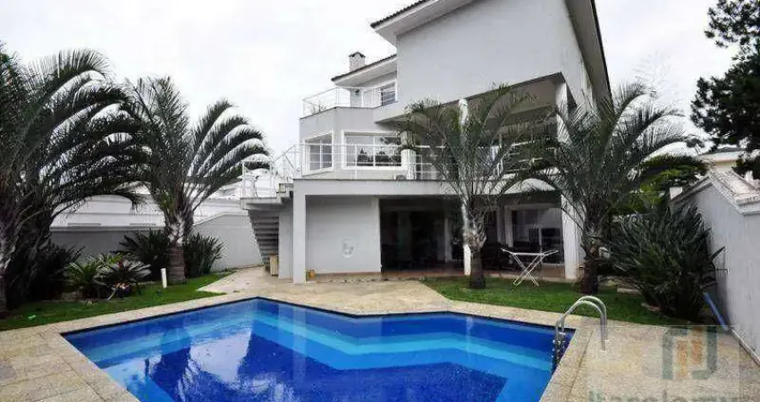 Excelente residência com ótima distribuição dos ambientes claros com 5 suítes 598 m² área construída, 6 vagas de garagem coberta, edícula ,toda reformada em alameda privilegiada do condomínio, pronta para morar.