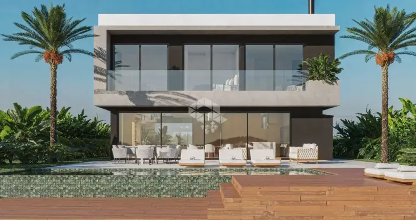 Apresentamos essa belíssima casa Contemporânea de 358,81m2 de área privativa, completamente equipada, mobiliada e climatizada, Terreno de 460,56m2 beira lago, elevador instalado, amplo living com ambientes decorados e pé direito duplo. Estar, lareira, jantar, espaço gourmet e sinuca integrados, 1suíte de hospedes no andar térreo, 5 suítes com sacada sendo uma master com banheira, estar íntimo no mezanino, esquadrias em PVC preta com tela mosquiteiro, persianas motorizadas nos dormitórios, acabamento de alto padrão, completamente mobiliada com todos equipamentos, garagem para dois carros.