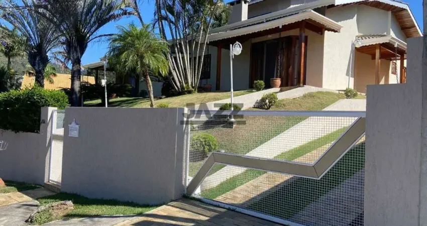 Descubra o conforto e a exclusividade desta casa térrea com 3 suítes, incluindo master com hidromassagem e closet, em um dos condomínios mais completos de Atibaia. O imóvel oferece sala de TV, sala de jantar, sala de visita, mezanino com sala de jogos e escritório, cozinha funcional, lavabo e lavanderia. Área de lazer com piscina com hidro, cascata, iluminação em LED e sistema Pure Water, além de espaço gourmet com churrasqueira e cozinha aberta. Conta ainda com 2 quartos para hóspedes com banheiro, casa de caseiro e garagem coberta para 4 carros.