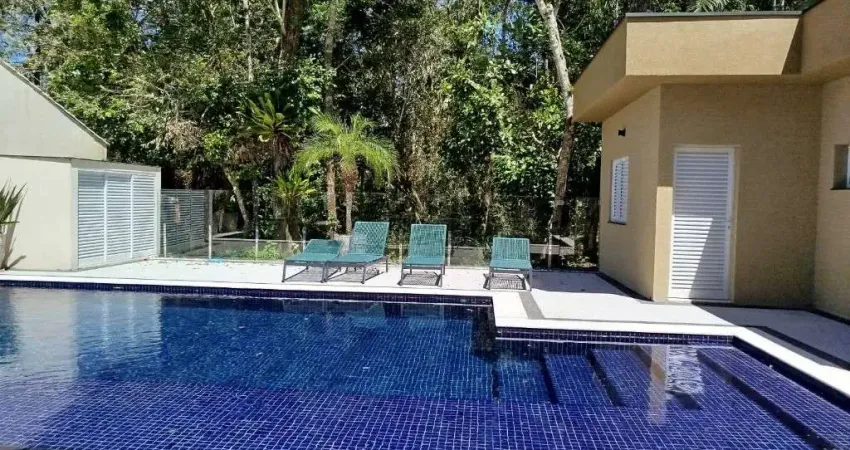 Casa à venda no M21 na Riviera, rua larga, com 6 suítes, piscina com deck coberto, 300 m² de área construída.