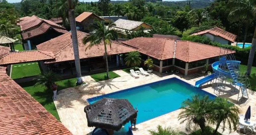 Magnifica Chácara de alto padrão em condomínio fechado com total infraestrutura, com quadra de tenis, quadra poli esportiva, piscina, campo de futebol, playground, segurança 24 com ronda e monitoramento.
