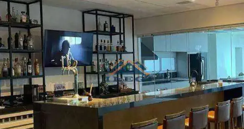 Tem 4suites (todas com varanda e persianas automatizadas), lavabo, suíte empregada, escritório, lavanderia, bar com balcão 4 metros integrado com área churrasqueira +4 metros quando aberta as portas de vidro, totalizando 8 metrôs balcão, chopeira 2 saídas , geladeira de balcão, sala de jogos. Som embutido com caixas JBL E YAMAHA e iluminação perfeita e td modernizada recente, com ar condicionado K7 48.000btus( bar e sala)