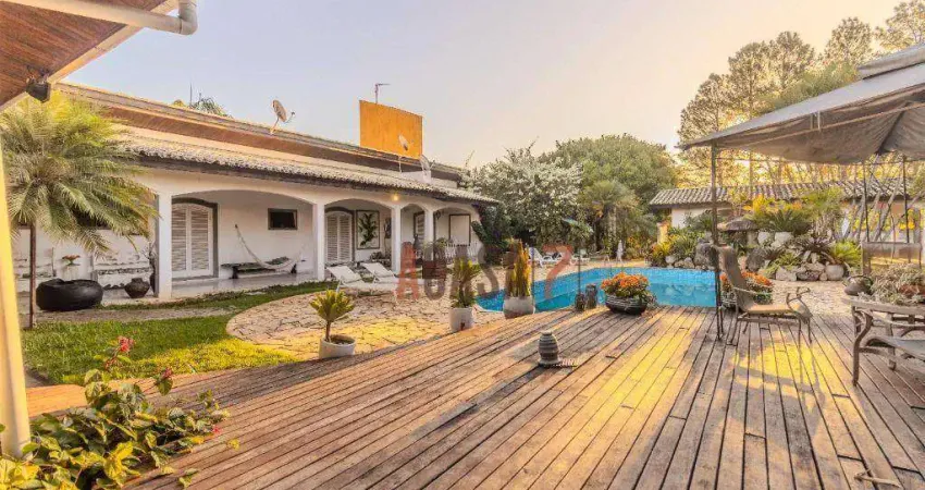 Em terreno de 5000 m² totalmente plano a construção de estilo colonial é totalmente térrea com 4 espaçosas salas - estar, jantar, piano e de relaxamento.