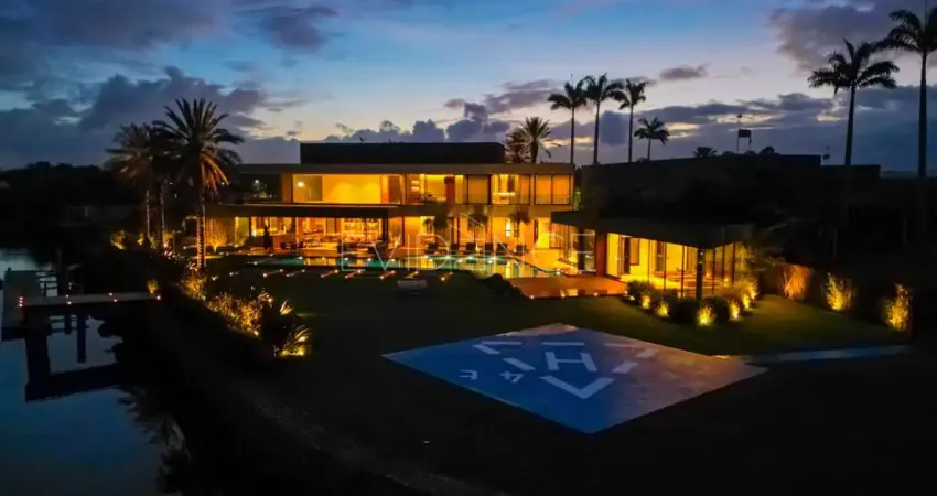 Mansão Exclusiva à venda no Guarujá com 3.000 m² de área construída, 7 dormitórios, sendo 7 suítes, heliponto e píer.