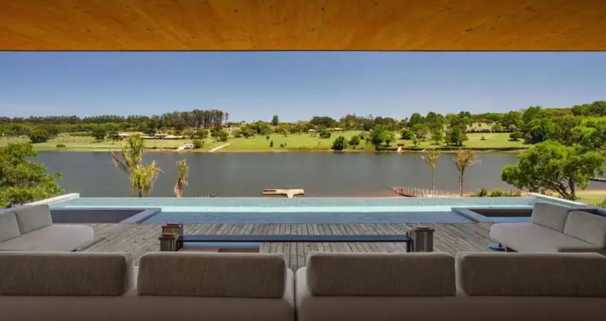 Esta casa, considerada uma das casas mais incríveis do Brasil, localizada as margem da represa de São Paulo é uma verdadeira obra de arte, assinada na arquitetura, design de interiores e todos os moveis - arquiteto Sérgio Sampaio. Em frente a represa, no braço mais valorizado e exclusivo da represa, a casa tem o pôr do sol de frente como protagonista. O terreno tem 10.000 mts², conta com quadra de tênis, quadra de beach tênis, jardins, pier na represa para barco e dois jet skis, e uma casa de hóspedes/serviço com duas suítes, completa com cozinha e lavanderia.