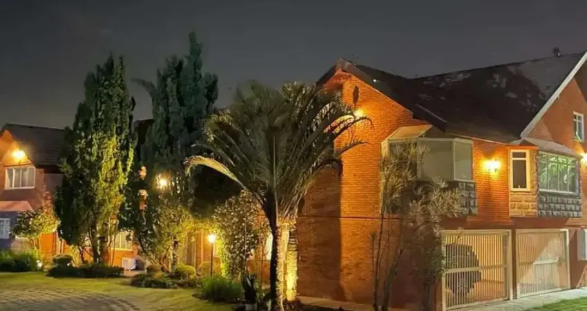Átrio de entrada com pé direito duplo, Sala de jantar, Living com sala de estar e lareira, Home-theater com telão e projetor, com proteção acústica nas paredes e teto e 2 lavabos sociais.