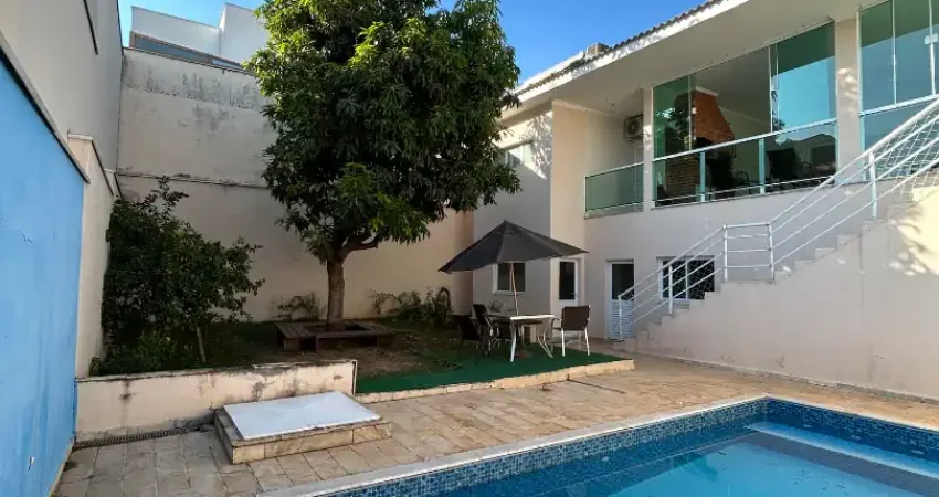 Casa com 4 suítes (Closet, hidromassagem), ar condicionado, escritório, salão de festas, piscina, jardim e quintal.