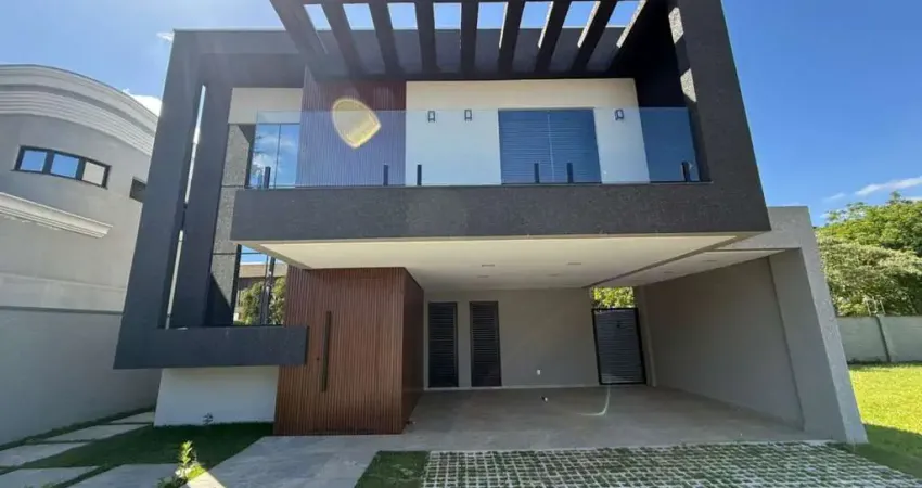 Com 227 m², oferece três suítes amplas com móveis planejados, sala de estar com painel, lavabo, cozinha integrada à área gourmet também com planejados, lavanderia e área externa gramada. A garagem acomoda dois carros, e a localização no final do condomínio garante maior privacidade, sem vizinhos nos fundos.
