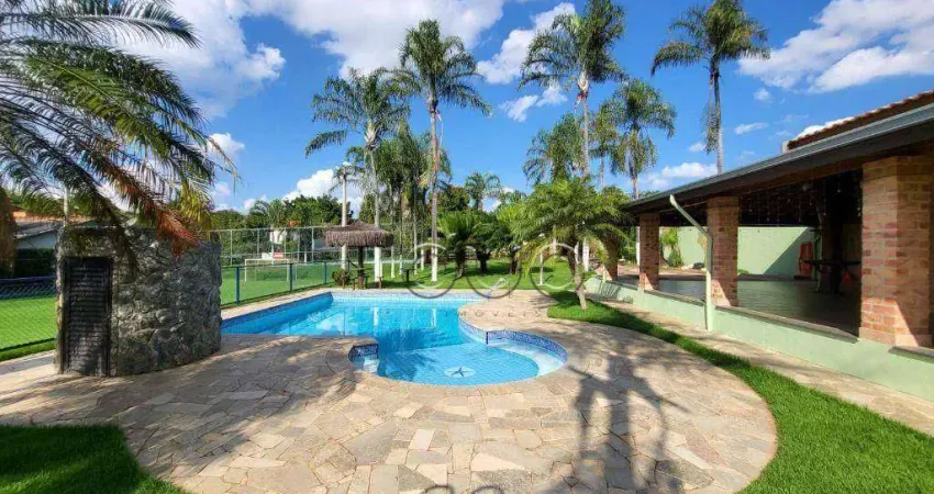 Casa para locação ou venda, Bairro Colinas de Piracicaba, Condomínio Colinas de Piracicaba, Piracicaba - SP, com 2000m² de terreno, 277,54 m² de construção, avarandada, com 02 dormitórios (sendo 01 suíte), banheiro social com box em vidro temperado e gabinete, sala para dois ambientes, com cozinha integrada e armários planejados, área de serviço coberta, despensa. Ampla área gourmet com churrasqueira, Piscina, Vestiários, Campo de futebol, 02 quiosques, com palmeiras e grama esmeralda. Impecável, com 04 vagas sendo 02 cobertas.