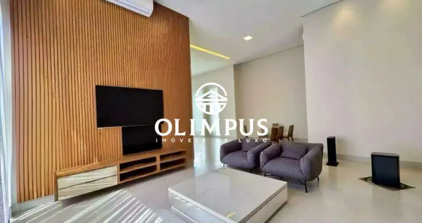 O projeto conta com três suítes amplas, todas mobiliadas com camas de casal, ar-condicionado e armários planejados. A suíte máster se destaca pelo closet espaçoso e aconchegante. A área social da casa impressiona com uma sala de visitas em dois ambientes, com pé-direito duplo, integrada à moderna varanda gourmet equipada com churrasqueira, bancadas em granito e perfeita para receber.
