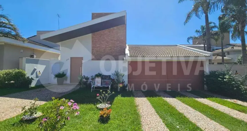 Casa térrea totalmente mobiliada, com 226,20 m² de área construída em um terreno de 412,36 m², oferecendo fino acabamento e excelente padrão construtivo. O imóvel é composto por sala ampla em três ambientes, 3 suítes com ar-condicionado, sendo uma suíte máster com closet, escritório, lavabo, cozinha totalmente planejada, despensa, área gourmet com churrasqueira, área de serviço, banheiro de serviço e varanda. Conta ainda com energia fotovoltaica, aquecimento solar de água, conexão para internet e 2 vagas de garagem cobertas. O condomínio oferece portaria e segurança 24 horas, academia e área de lazer completa, garantindo conforto, segurança e qualidade de vida em uma das regiões mais valorizadas da zona sul de Uberlândia.
