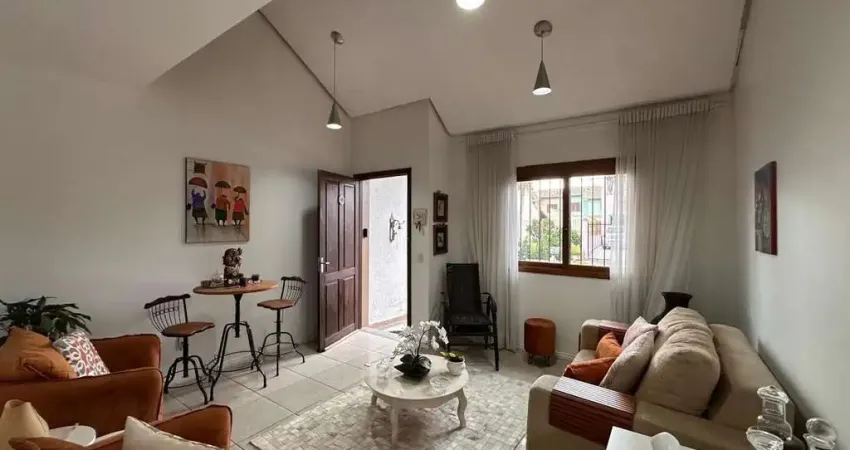 Casa em condomínio mobiliada, 3 dormitórios sendo 1 suíte, 108m² de área privativa, banheiro social, lavabo, living para 2 ambientes, ampla cozinha com móveis planejados e pátio.