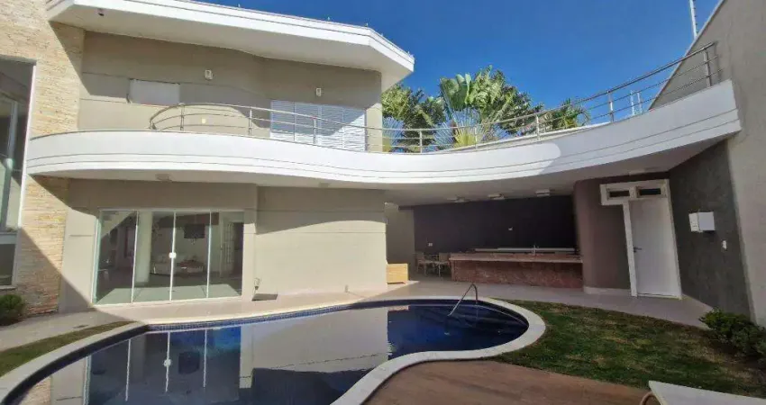 Casa residencial em condomínio fechado semi-mobiliada com 3 dormitórios planejados sendo 1 suíte master com closet, jardim de inverno, escritório, sala de estar, sala de jantar, sala de tv, cozinha com planejados, espaço gourmet com churrasqueira, piscina e garagem coberta para 2 carros.