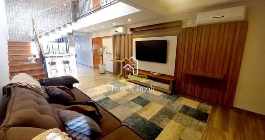 Esse sobrado espetacular possui em sua parte superior 2 suítes master com closet e ar-condicionado, sendo que 1 deles possui banheira de hidromassagem e varanda com uma vista incrível. A parte térrea conta com 1 quarto, banheiro, escritório, sala de TV e jantar integradas com ar-condicionado, uma escada imponente, cozinha no estilo americano com área gourmet integrada e ar-condicionado, lavabo, área de serviço com despensa, quintal com churrasqueira, ducha e um depósito para itens diversos. Sobrado impecável, feito com materiais de primeira e uma belíssima decoração.