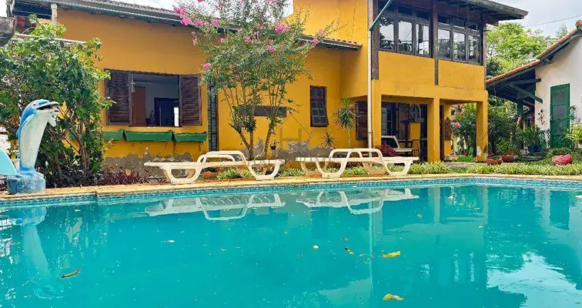 Casa rústica com piscina em condomínio fechado em Cotia/SP, disponível para venda e locação, com ambientes amplos, estrutura completa e integração com a área verde.