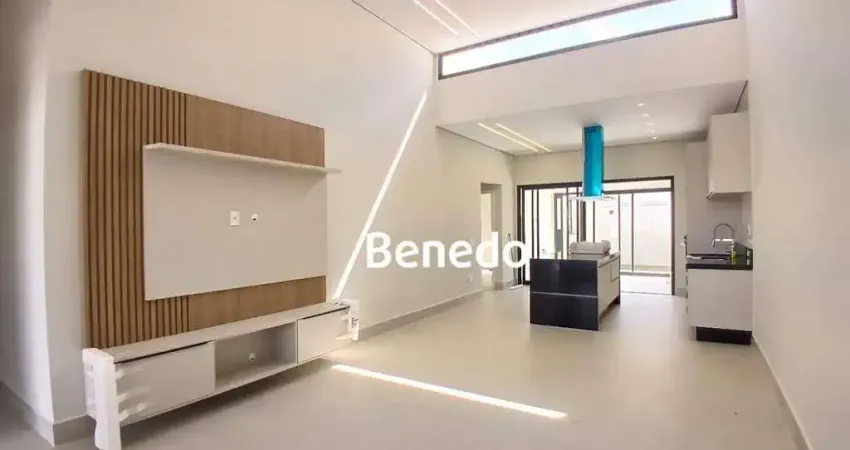 Casa térrea para locação no Terras da Estância, com excelente acabamento e conforto. São 3 quartos, sendo 2 suítes, todos com ar-condicionado e armários planejados, incluindo painel para TV na sala. A sala ampla é integrada à área gourmet completa, com divisória que valoriza o ambiente.