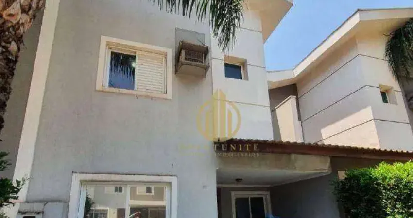 Sobrado em condomínio fechado, dormitórios sendo 1 suíte, armários planejados na suíte e mais um quarto, ar condicionado, banheiro social, sala de TV e sala de sala de jantar integradas, cozinha com armários e cooktop, área de serviço com armários e churrasqueira. 2 vagas de garagem.