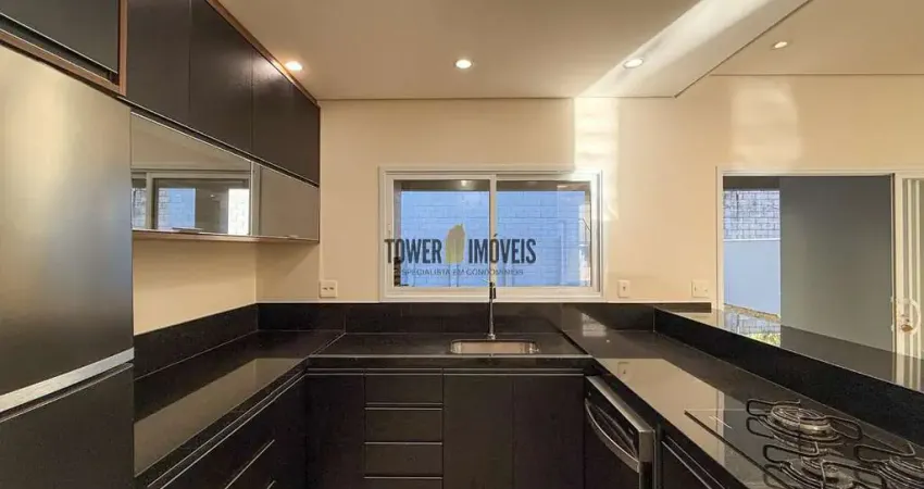 cozinha planejada equipada com cooktop, integrada à sala para dois ambientes, lavabo, lavanderia, despensa e escritório para home office.