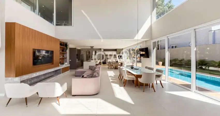 Sala para 4 ambientes confortáveis, ampla, iluminada, integrada e com pé direito duplo.