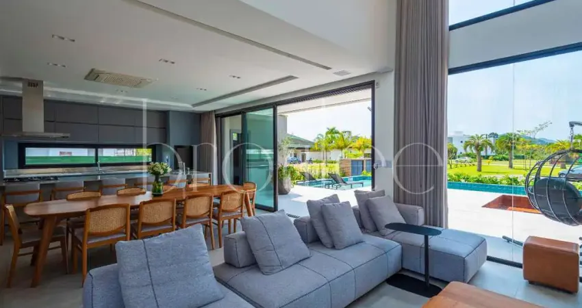 Casa para venda ou aluguel no Condomínio Reserva Camboriú com 390m² de área construída, 04 suítes sendo uma master com 60m², suíte master com banheira e closet, sala de estar, sala de jantar, cozinha e área gourmet, churrasqueira a carvão, 06 banheiros, 01 lavabo, piscina aquecida com sistema solar e cascata, deck externo rebaixado em madeira e mármore travertino, duas champanheiras embutidas com lareira, sistema de filtragem de água de 2000lh, garantindo água filtrada em todos os ambientes, lareira á gás na sala, sistema de ar - condicionado em VRF, o mais eficiente e econômico do mercado todos os aparelhos em modelo cassete (LG lançamento), sistema de recirculação de água quente, iluminação de emergência embutida em todos os ambientes de circulação da casa, incluindo os banheiros até nos banheiros, adega, lavanderia, captação de água da chuva, ar-condicionado em todos os ambientes, aspiração central, energia solar, aquecimento a gás, vagas de garagem para até 06 carros sendo três cobertas e carregador para veículos elétricos.