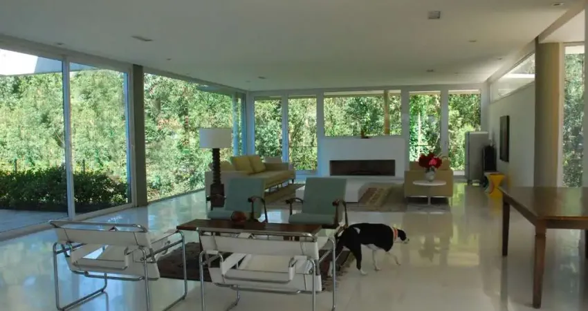 Linda Residência com 4 suítes no Tamboré 1, com 1500 m² AT. e 900 m² AC, salão de jogos (que pode ser a 5a. suíte ou quarto de hóspedes), piscina, sauna, home/sala intima, adega, depósito. Não tem elevador, mas foi previsto no projeto e pode ser instalado sem maiores complicaçõ(link removido) paisagismo que circunda a área social com um terreno 1500m² e 900 m² área construída. O lote do terreno é bastante especial porque tem duas áreas verdes anexas (ao lado 2000m² que foi incorporada ao jardim e ao fundo 10.000m² que garante uma vista verde permanente). Por isso a casa não tem e não terá vizinhos próximos e será sempre cercada por área verde. Conta também com um pavimento inferior que não foi finalizado, mas que poderia adicionar facilmente mais 120m² para qualquer uso. O projeto da casa é contemporâneo feito pelo escritório de arquitetura Sidônio Porto. Esse projeto já foi publicado em livros e revistas e a casa utilizada em filmagens de mais de 15 comerciais.