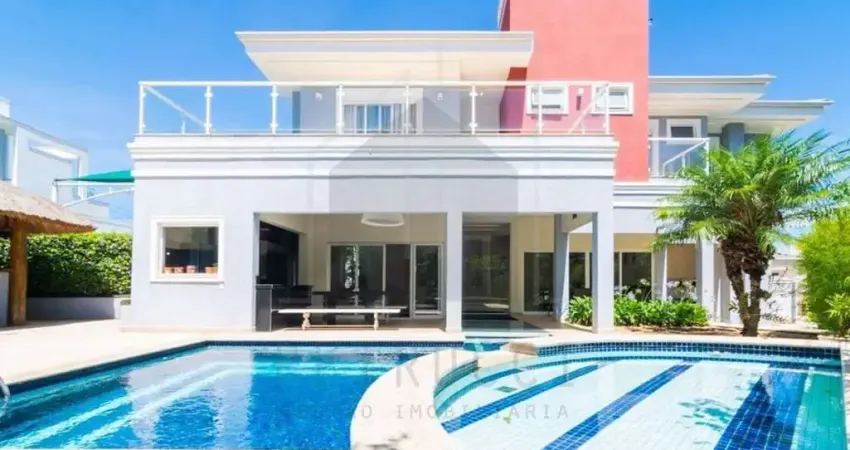 Sala para 3 ambientes, iluminados e arejados. Escritório planejado, lavabo. 4 suítes no pavimento superior, todas com sacada, sendo uma máster com closet e hidro. Nos quartos, persianas elétricas acionadas por controle e tela mosquiteiro. Área gourmet com belo paisagismo, lago com carpas, piscina integrada à casa, churrasqueira, quiosque e amplo quintal para a diversão de sua família.