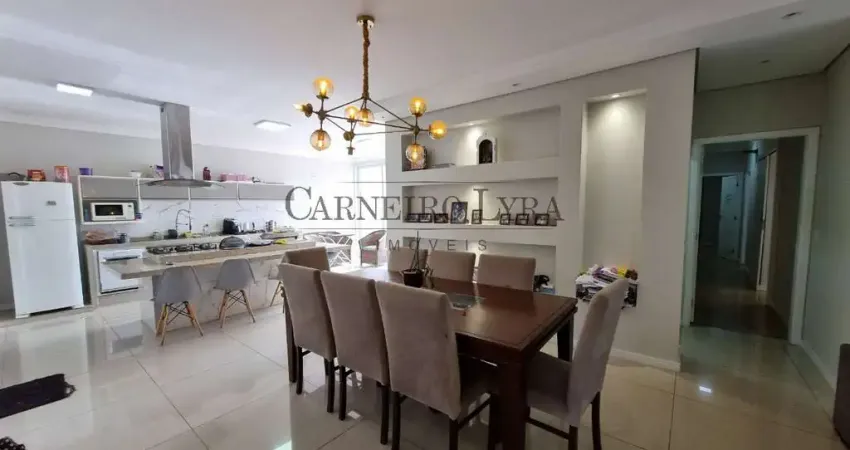 Garagem coberta com até 3 vagas. Hall de entrada, sala de estar ampla, com até dois ambientes, jardim de inverno, sala de jantar e cozinha com ilha e armários planejados. Lavabo.