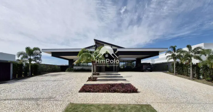 Casa em condomínio com 400m² de área construída e 800 m² de terreno, conta com 4 suítes, sendo uma máster com closet, salas de esta, sala de jantar, cozinha planejada, área de serviço, piscina e um belo espaço gourmet com churrasqueira.